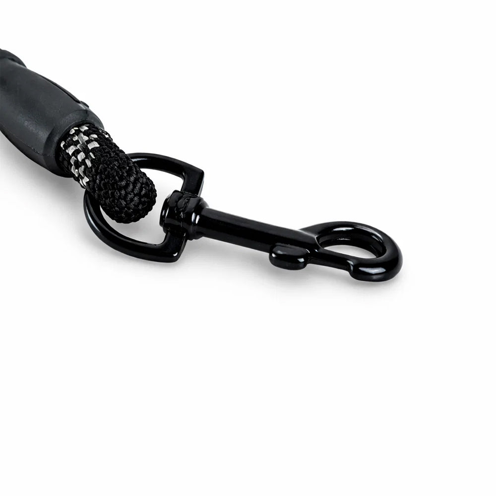 Der 360° drehbare Karabiner ermöglicht eine sichere Befestigung am Halsband oder Geschirr und verhindert zuverlässig ein Verdrehen oder Verheddern der Leine, auch bei aktiven oder ziehenden Hunden.